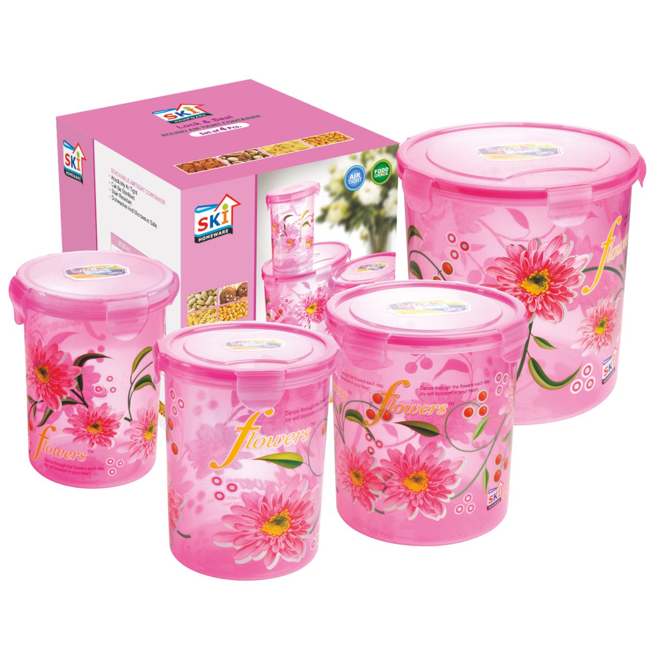 Lock & Seal Round Container 4Pcs Set (900, 1850, 3500, 5000 ML)