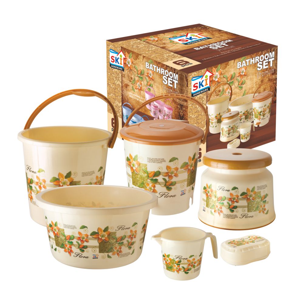 • (18ltr bucket, jupiter patla, deep tub 4020, garbage bucket 107 , mug 1ltr , camay soap case)